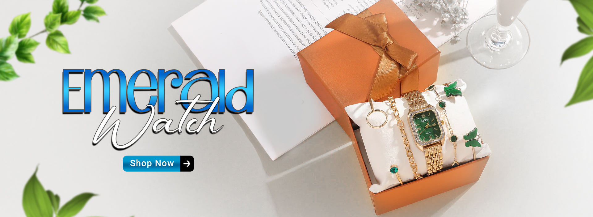 Elegant quartz Emerald Watch with a sleek design and a vibrant green dial for a timeless look.